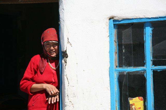 Naine uksel, Alitšur, Pamiirid, Tadžikistan