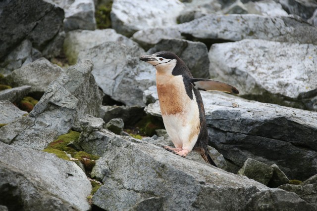 Eeselpingviin kivisel maastikul