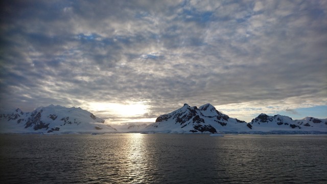 Beagle’i kanal. Esiplaanil Islas de Tierra del Fuego, tagaplaanil Tšiilile kuuluvad mäed.