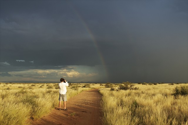 Fotograaf ja vikerkaar, Spitskop, Lõuna-Aafrika Vabariik