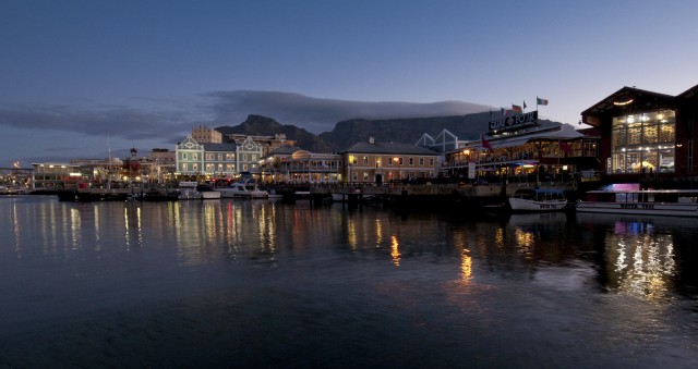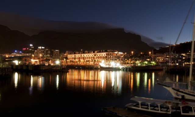 Valgustatud sadam öösel, Kaplinn, Lõuna-Aafrika Vabariik